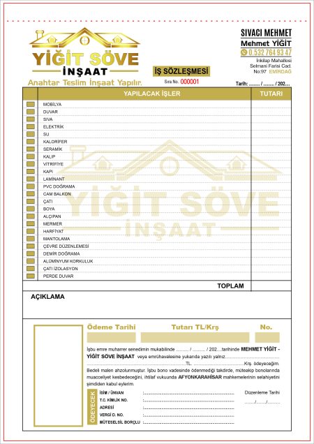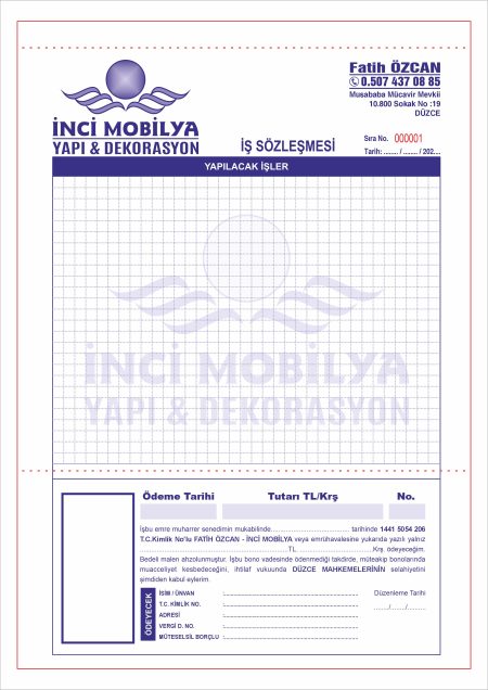 İŞ SÖZLEŞMESİ (DÜZ MODEL) 2 RENK BASKILI Fiyat aralığı: 1.900,00 ₺ - 7.950,00 ₺