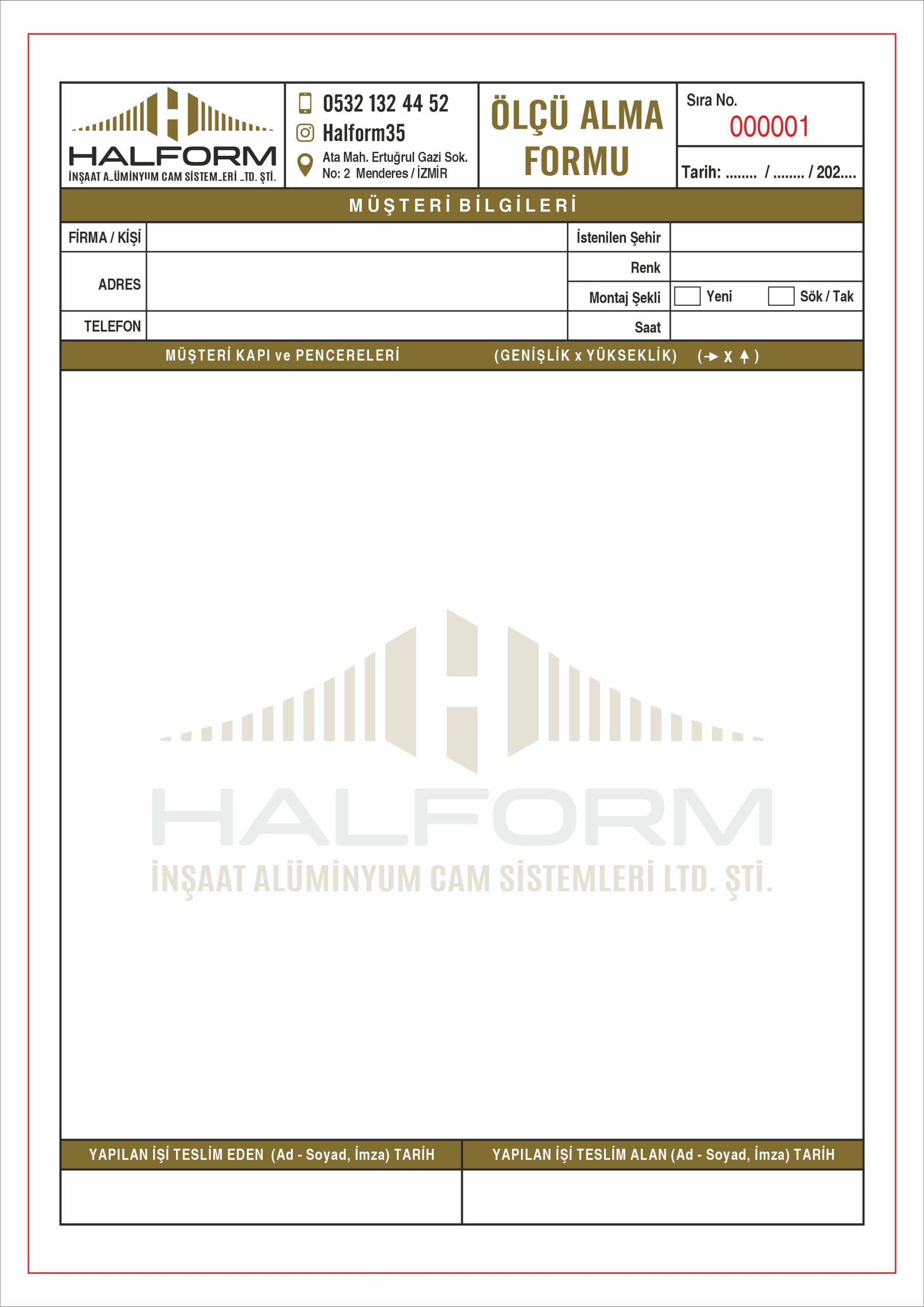 Ölçü Alma Formu - 2 Nüshalı - A4 Ebat - Seri Numaralı - 2 Renk Baskılı