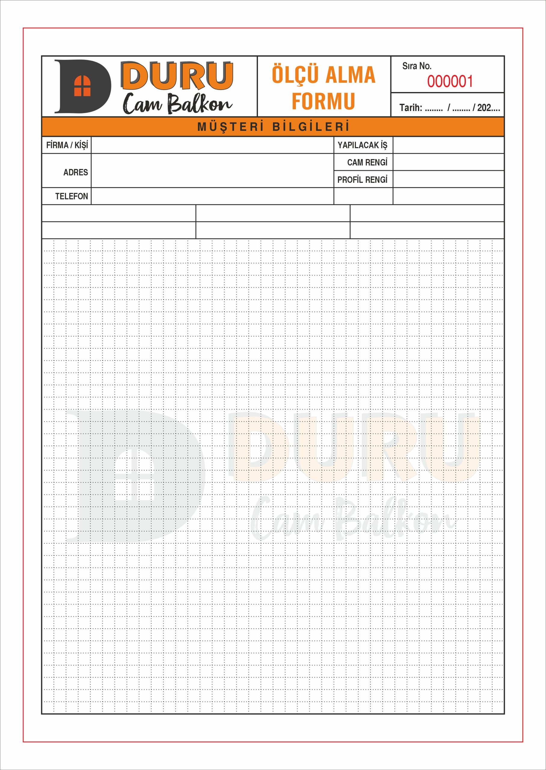 Ölçü Defteri – Kopyasız Tek Nüsha – 2 Renk Baskılı – A4 Ebat
