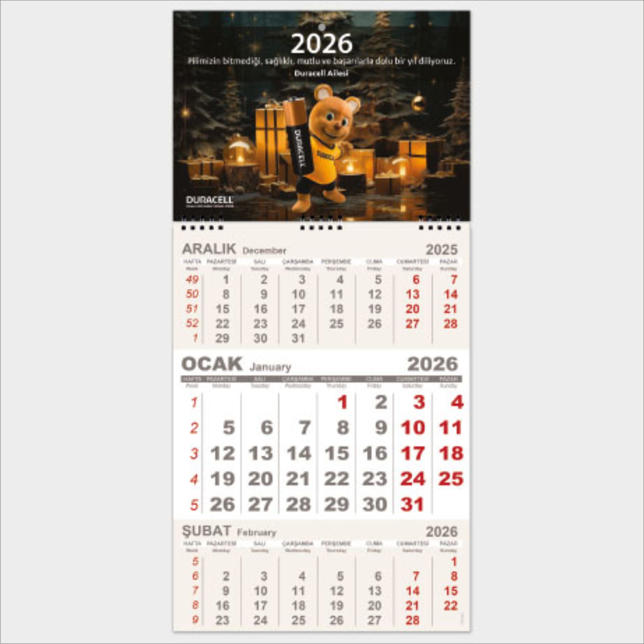Orta Boy Gemici Takvim – Tek Spiral – Üst Karton Baskılı