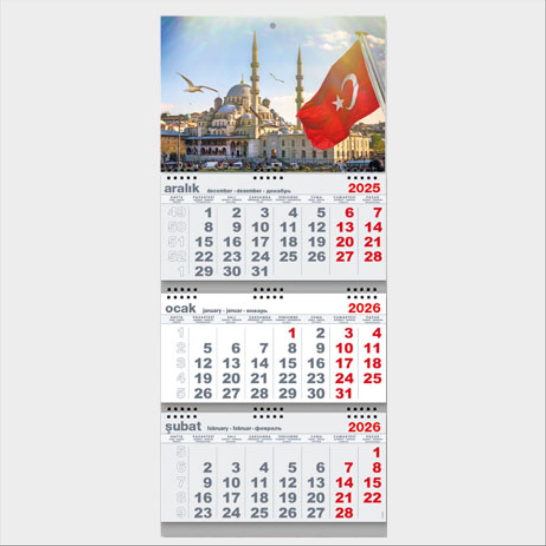 Orta Boy Gemici Takvim – Üç Spiral – Üst Karton Baskılı