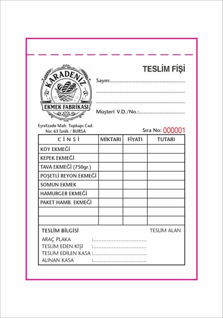 1 Size + 1 Müşterinize + 1 Atölye/Servis Aracı/Montaj Birimi —– 3 NÜSHALI