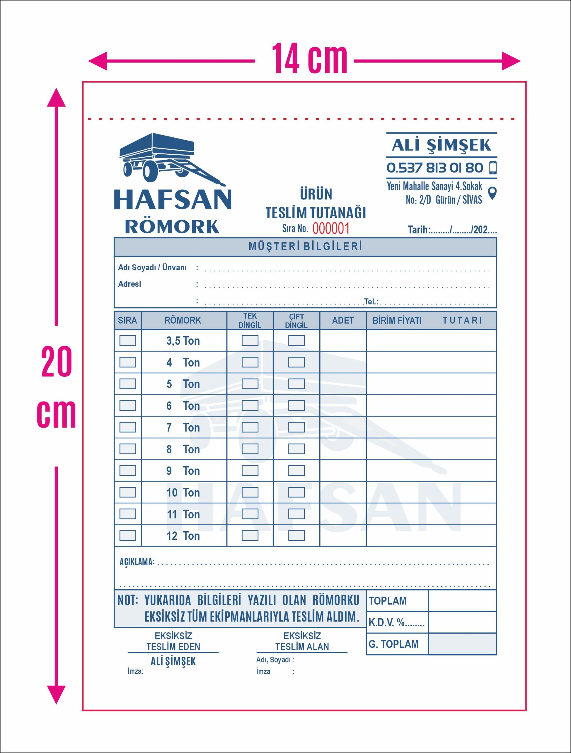 Ürün Teslim Fişi – A5 Ebat – 2 Nüsha – Tek Renk Baskılı – Seri Numaralı
